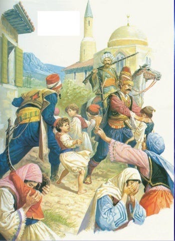 There were no reliable birth records of those Ottoman years in Greece of the Greek children being born. Bureaucracy was chaotic in the provinces and villages and it was in no one’s interest to report the true age of children lest they’ll be taken. To avoid too much attention when the child gathering would take place, often girls would be declared as muuuuuuch younger than real, as were the boys. You needed to look your age to be taken….