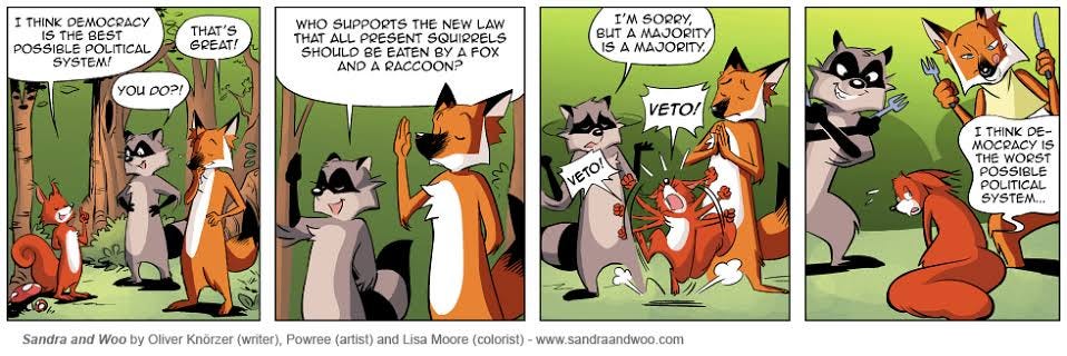 Όσον αφορά δε στα τερτίπια και τις διάφορες αναποδιές της Δημοκρατίας, ο -κάθε άλλο παρά άγιος- Γουίνστον Τσόρτσιλ τα έχει πει καλύτερα απ’ όλους, ως συνήθως: “democracy is the worst form of government except for all the others that have been tried.“