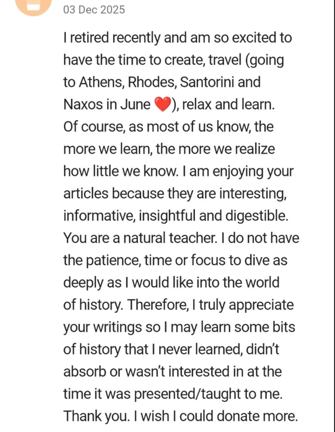 Whether it’s just the price of a single frappé coffee or a book, every contribution matters. Donations help cover research, writing, and the resources needed to keep sharing my passion for uncovering the past and bringing history, archaeology, and culture to life: