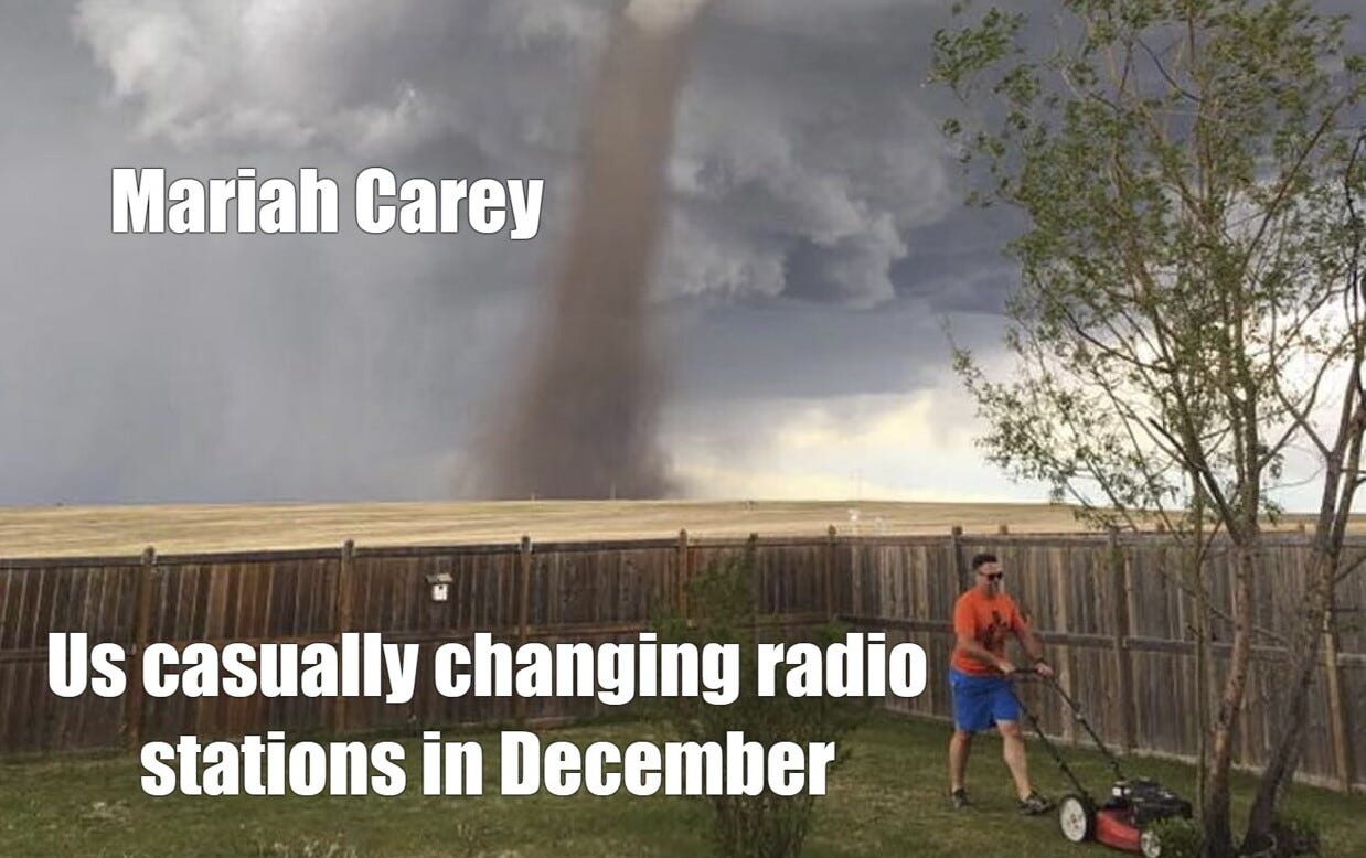 And two (kind of) weird facts: In the UK, a bizarre goat-farming experiment found goats produced more milk when hearing the song versus other tunes like Alvin and the Chipmunks songs. And finally, a bar in Dallas once “banned” the song until December, then limited plays to once nightly due to overkill complaints. When the story went viral on Twitter, Carey herself praised their action.