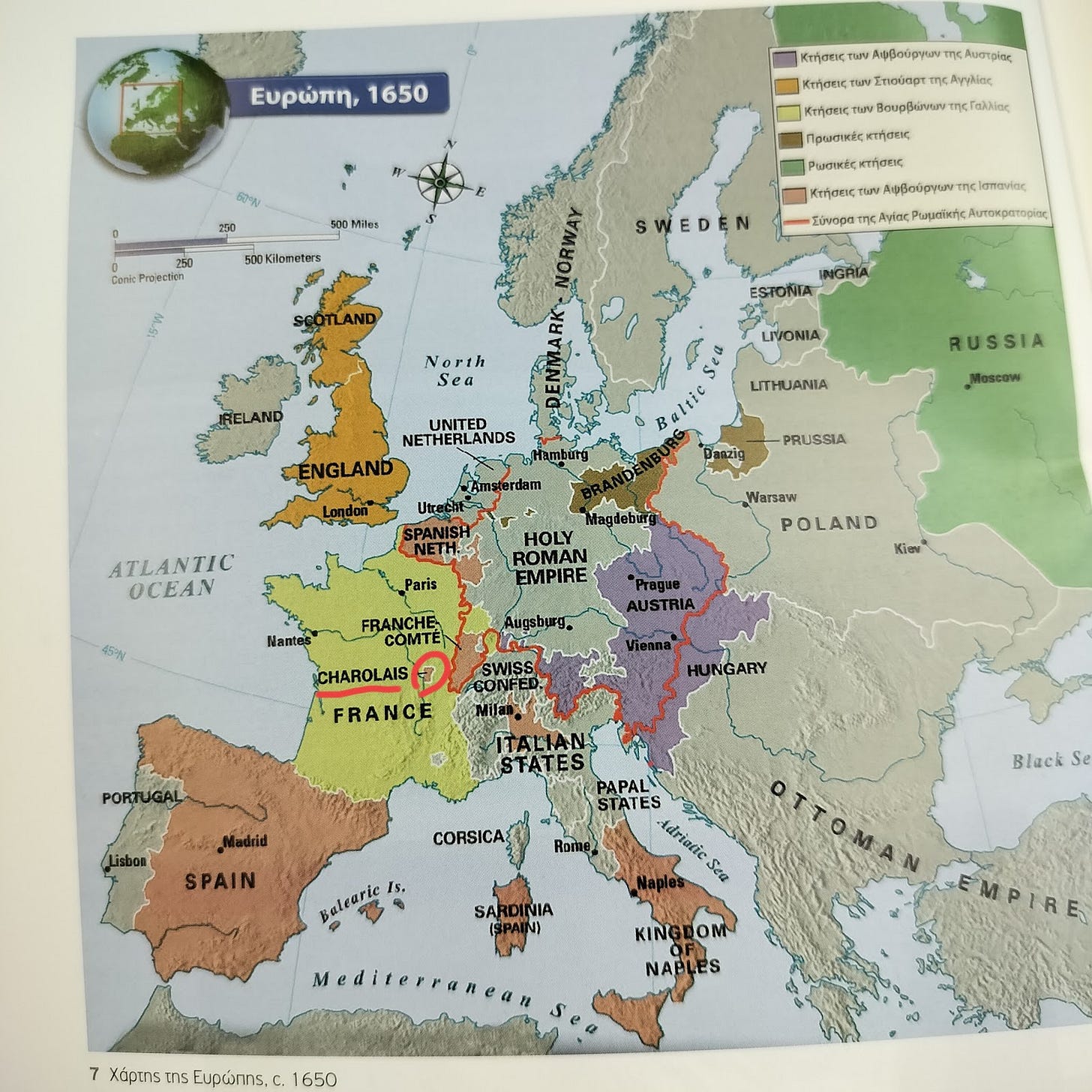 Πριν από λίγες ώρες έπεσα πάνω σε έναν χάρτη, στο βιβλίο του Άλκη Χαραλαμπίδη για το Μπαρόκ, που απεικονίζει την Ευρώπη γύρω στο 1650. Θα μπορούσε κανείς να βρει αρκετά ενδιαφέροντα σημεία να σχολιάσει σε αυτόν τον χάρτη, αλλά το μάτι μου τράβηξε μια συγκεκριμένη περιοχή με τα πιο παράξενα σύνορα: το Charolais, μια κομητεία στη μέση της Γαλλίας, με φαινομενικά γαλλικό όνομα, που όμως φαινόταν να είναι… ισπανικό έδαφος; Εντάξει, τώρα έπρεπε να αφήσω στην άκρη τον Rubens και τον Bernini και να αρχίσω να ψάχνω.