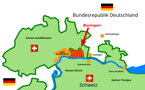 Το Büsingen am Hochrhein στην Ελβετία είναι ένα από αυτά. Αποτελεί γερμανικό εξκλάβιο που περιβάλλεται ολοκληρωτικά από ελβετικό έδαφος, δημιουργώντας μια σύνθετη δικαιοδοτική κατάσταση: